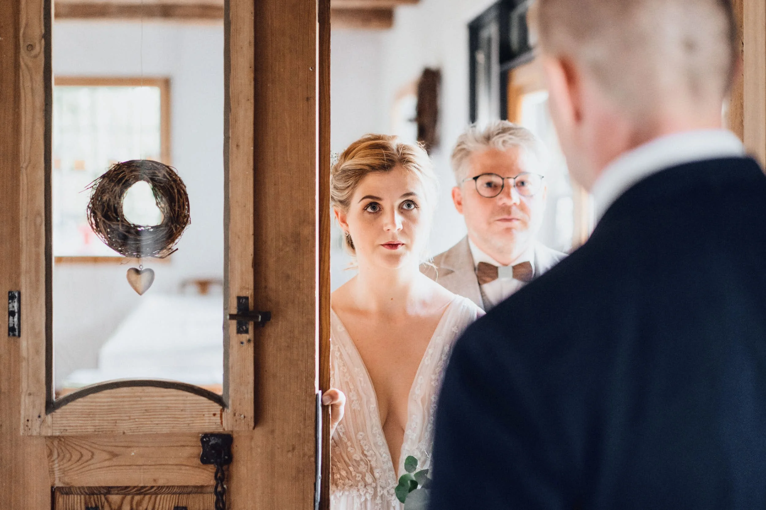 Das Getting-Ready fand ganz entspannt bei Kira-Mays Eltern statt – wobei, ganz entspannt ist relativ: Die Aufregung war bei allen spürbar. Mutter, Vater und Schwester halfen beim Anziehen, während rundherum noch schnell Frisuren gerichtet und kleine Details abgestimmt wurden. Für die hübsch angerichteten Häppchen blieb kaum Zeit – zu viele Emotionen lagen in der Luft.